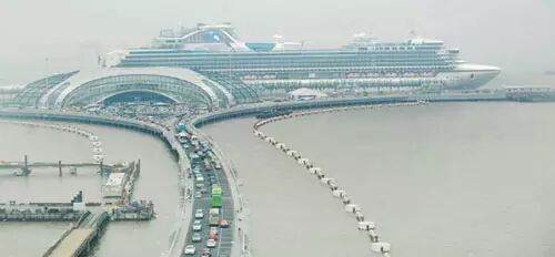 目前,被誉为“东方之睛”的吴淞口国际邮轮港现有的2个邮轮泊位,已记录下18艘母港邮轮的倩影。邮轮港后续工程将新建2个22万吨级码头以及平台、引桥、客运大楼及廊道,扩建后,吴淞口国际邮轮港岸线长度将在目前774米的基础上延伸至1600米,形成4个大型邮轮泊位。整体工程计划于2017年底竣工,2018年正式投入运营,形成水陆联动的4船同靠运营能力。预计在“十三五”期末,吴淞口国际邮轮港一年将接待邮轮超过600艘次,接待游客超过500万人次,并有望跻身全球前三。